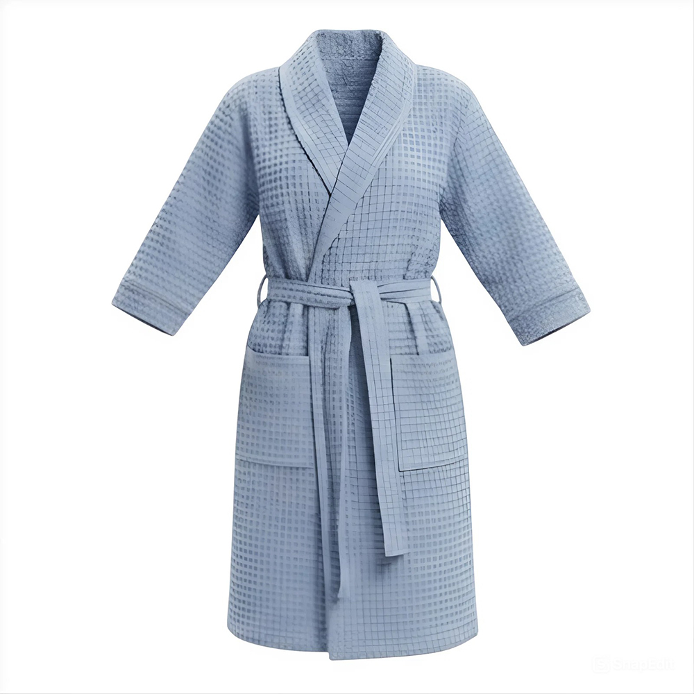 Банный вафельный халат Модель-404, светлый серо-голубой