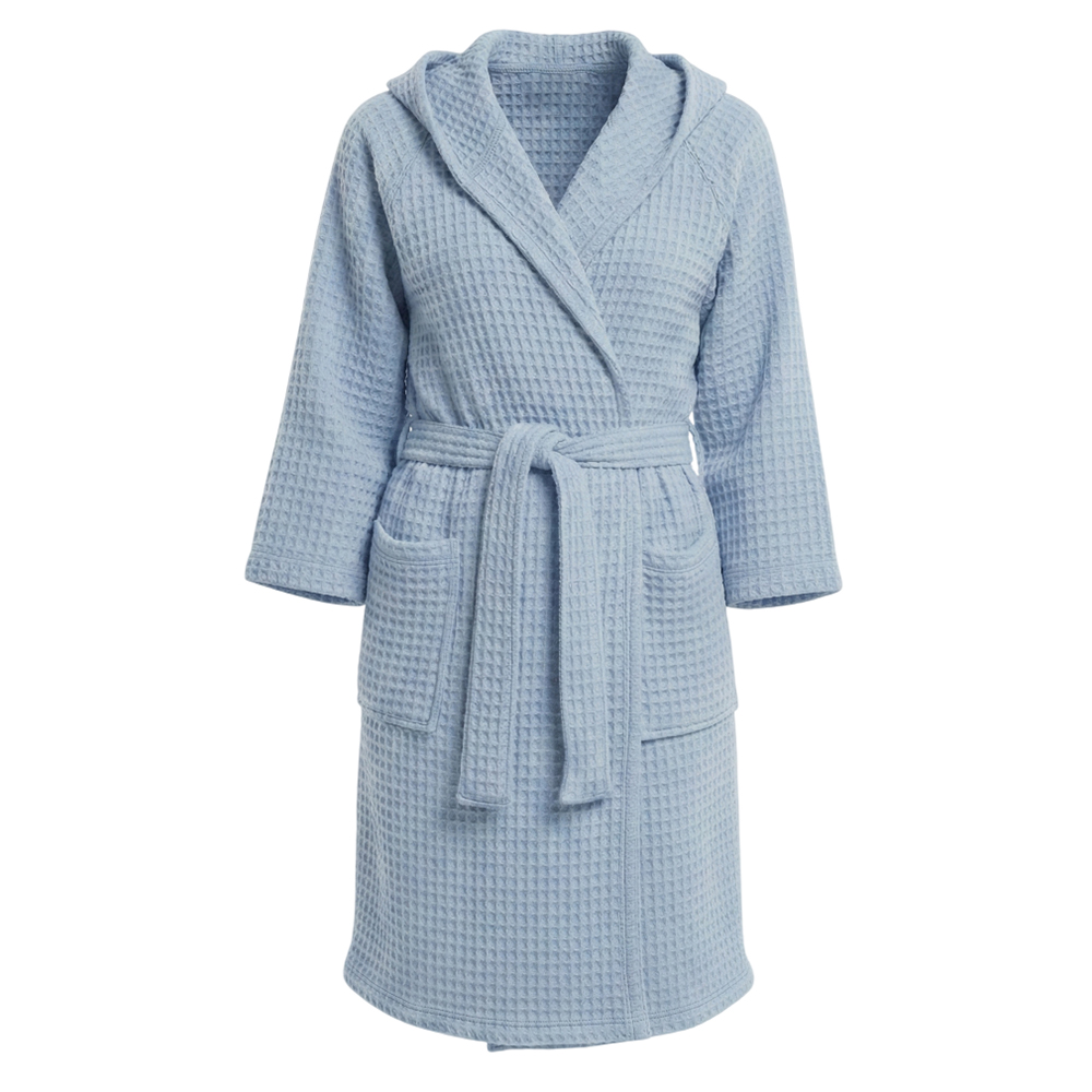 Банный вафельный халат с капюшоном Модель-402, светлый серо-голубой