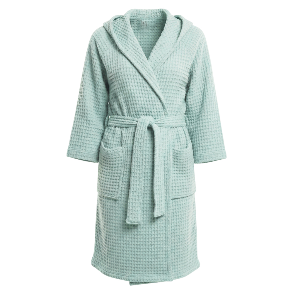 Банный вафельный халат с капюшоном Модель-403, серая мята